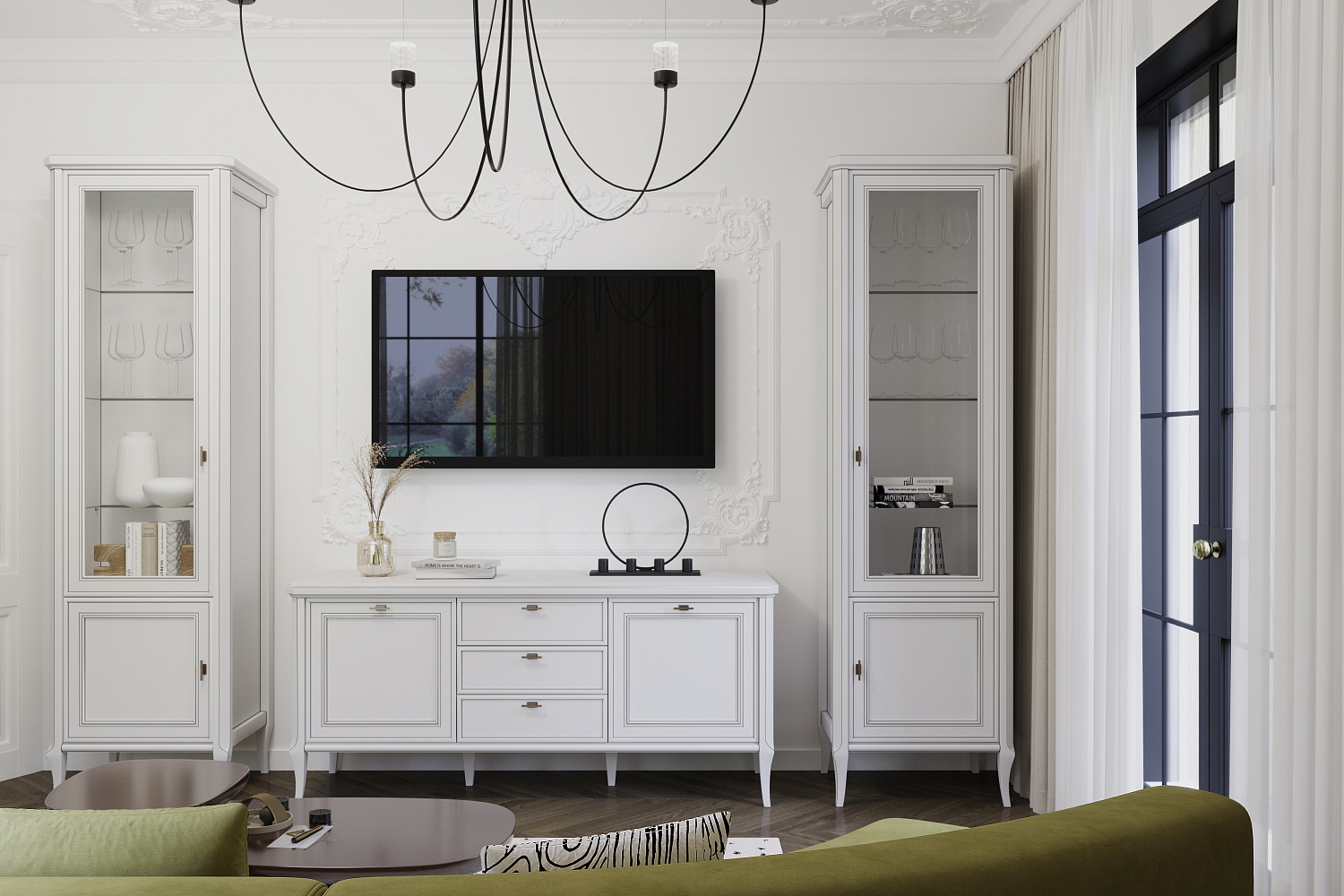 – описание: размер 214.8x287x50.5 см, цвет бело-серый, назначение для гостиной, стиль неоклассика.