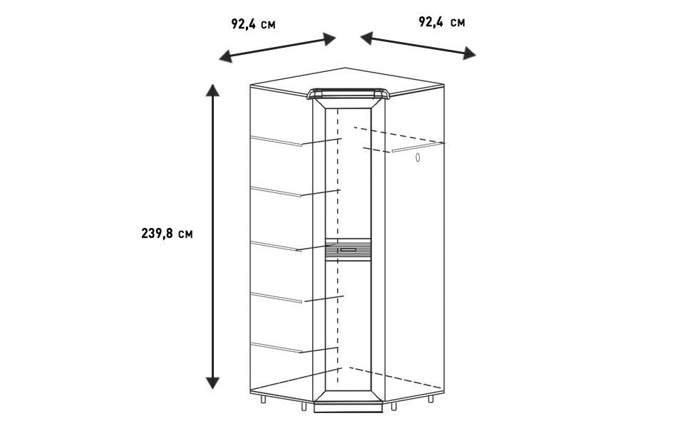 - Внимание! Угловой шкаф не комплектуется с боковыми колоннами (не предусмотрена стыковка).